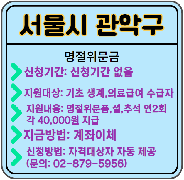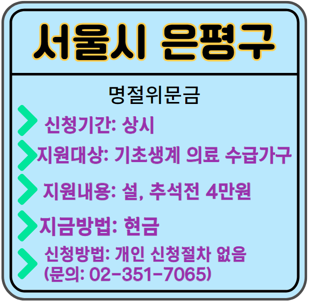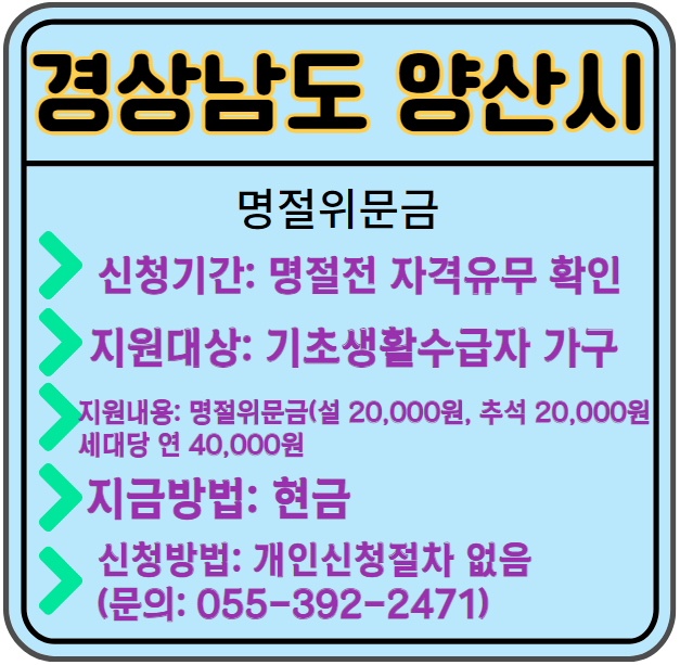 생계급여 또는 의료급여 수급자를 대상으로 하거나 해당 지역의 취약계층 위주로 명절 위로금이 지급되고 있음을 알 수 있습니다.