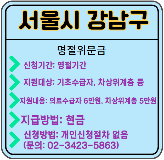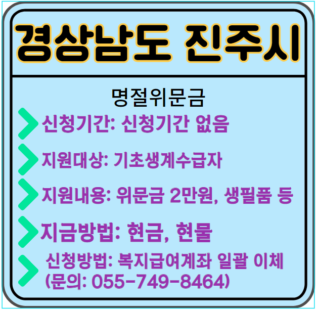 명절 위로금 및 위문금, 명절 지원금 등 해당 지자체 별로 지원하는 대상과 금액, 방법이 각기 다르게 나타나고 있음을 확인할 수 있습니다.
