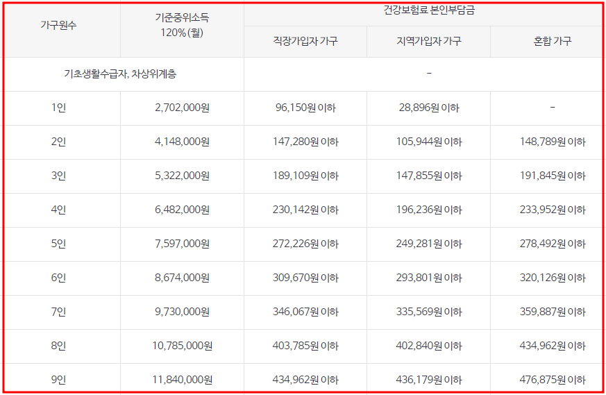 - 취업자: 가입기간 1개월 이상 건보 직장가입자 또는 고용, 산재 가입자