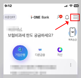 • 스마트폰에 설치된 i-one뱅크(개인) 앱에 로그인합니다.