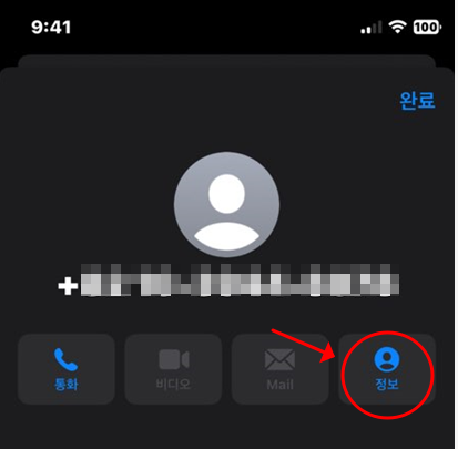 - 메시지 상단에 있는 발신자 이름 또는 번호를 눌러줍니다.