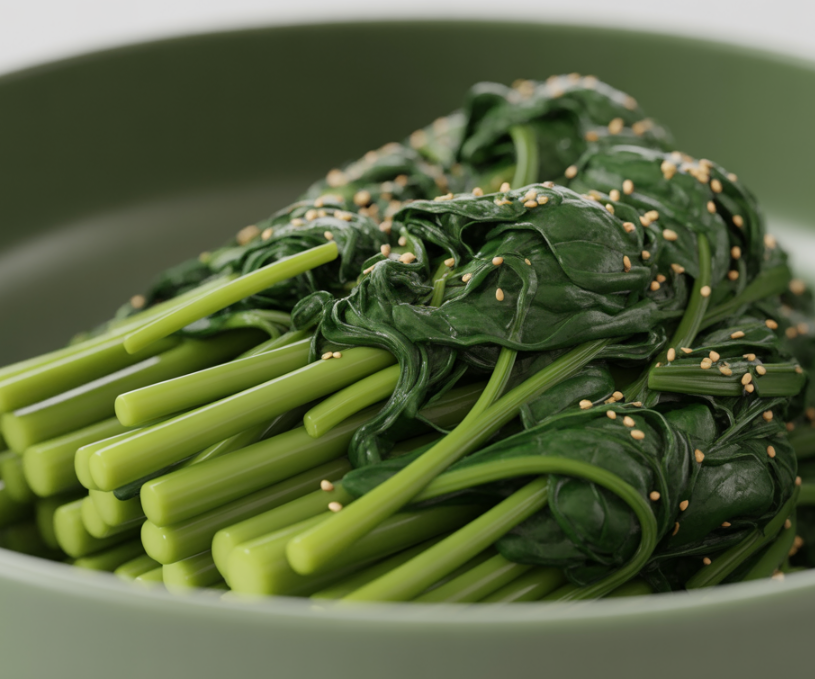 1 시금치나물 시금치 데쳐서 간장, 참기름으로 무침