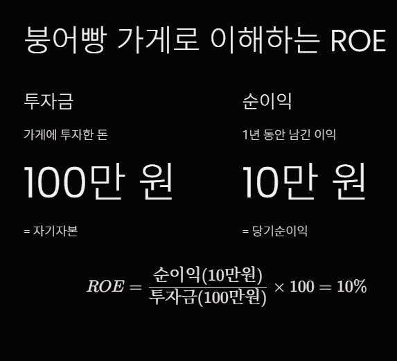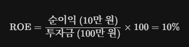즉, ROE 10%는 '내가 투자한 100만 원으로 10만 원의 이익을 만들었다'는 뜻입니다.