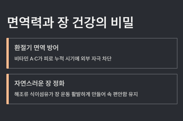 특히 환절기나 피로가 쌓일 때 김을 꾸준히 섭취하면 외부 자극에 대한 방어력이 높아지는 것을 기대할 수 있습니다.