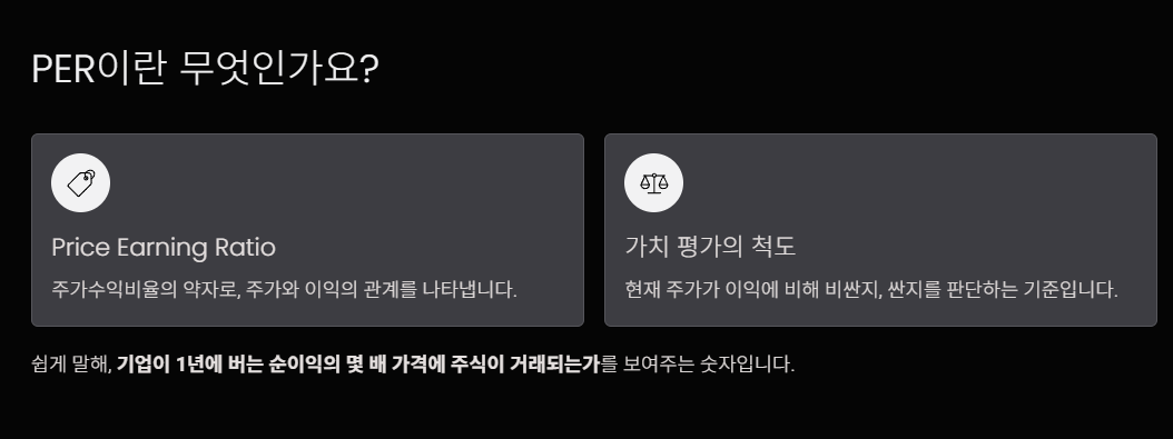 - PER이 낮다면? → 기업의 이익 대비 주가가 낮게 평가된 상태