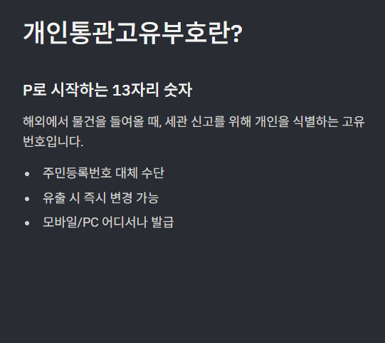 개인통관고유부호(P로 시작하는 13자리 숫자)는 해외 직구 시 주민등록번호를 대신하여 개인의 수입물품 통관에 사용되는 중요한 식별 부호입니다.