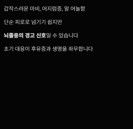 갑자기 한쪽 팔다리가 힘이 빠지고, 말이 어눌하거나 어지러워 중심을 잡기 어려운 경험을 한다면 누구라도 심상치 않다는 느낌을 받습니다.