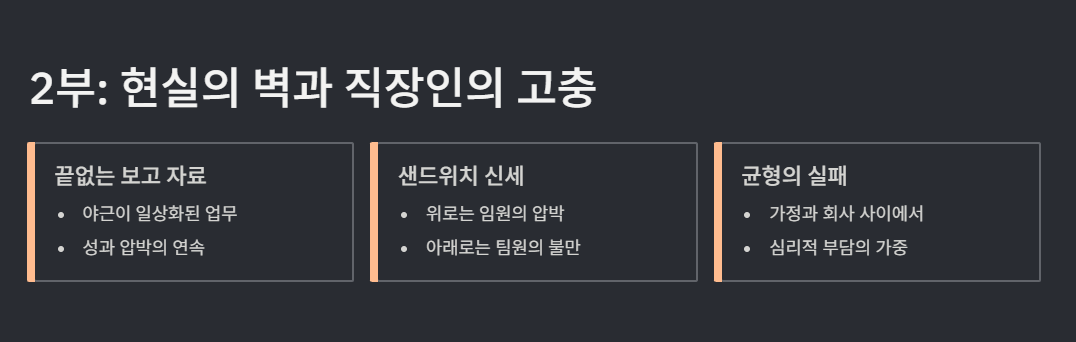 ● 2부 – 현실의 벽과 직장인의 고충