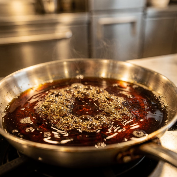 👉 간장 1, 설탕 1을 팬에 넣고 약불에서 살짝 끓입니다.
