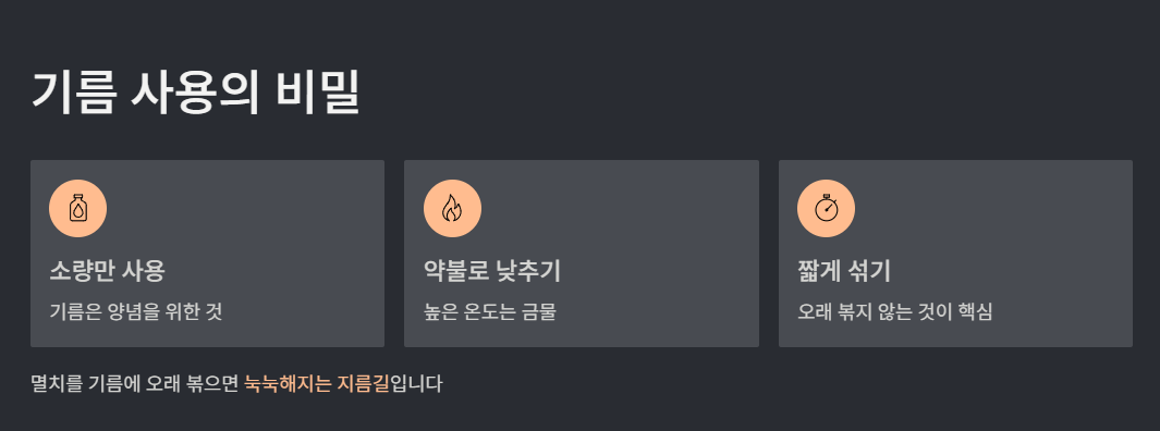 기름은 멸치가 아닌 양념을 위한 재료라고 생각하는 것이 좋습니다.