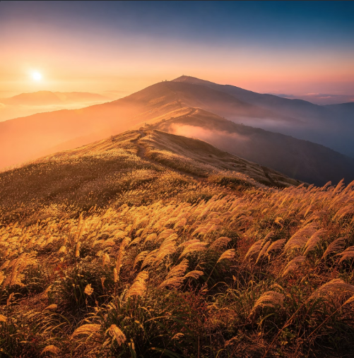 특히 해 질 녘 노을이 비칠 때의 억새는 황금빛으로 변하며 비현실적인 아름다움을 선사합니다.